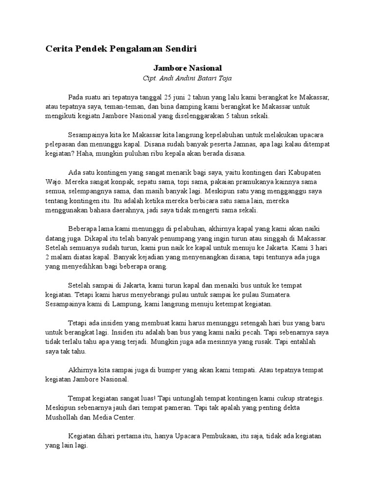 Cerita Pendek Pengalaman Pribadi Bahasa Indonesia